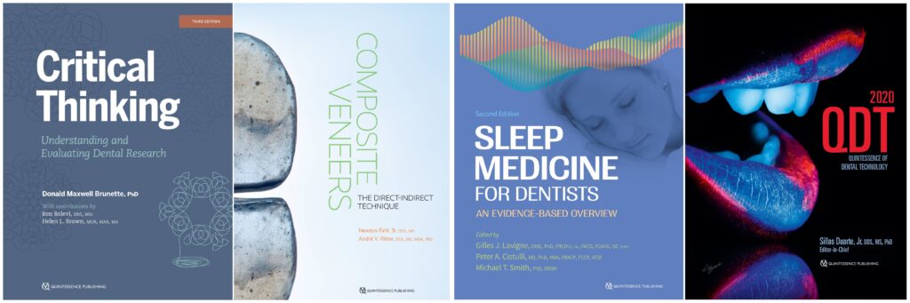 The list goes on and on. From Donald Maxwell Brunette’s Critical Thinking to Newton J. Fahl, Jr and André V. Ritter’s Composite Veneers, every book this year has truly set the bar higher for clinical excellence and academic rigor. A new edition of Sleep Medicine for Dentists, edited by Gilles J. Lavigne, Peter A. Cistulli, and Michael T. Smith, updated the current research available on the topic, and QDT 2020 once again showcased the best techniques and masters in esthetic dentistry. Francesco Pedetta published a tidy little book about straight-wire orthodontics, and Mohammed Sabeti, Edward S. Lee, and Mahmoud Torabinejad published their own tidy book called PRF Applications in Endodontics. Deborah Termeie updated her best-selling Periodontics Q&A Review, and Andreas Filippi and Sebastian Kühl’s Tooth-Preserving Surgery was made available in English.