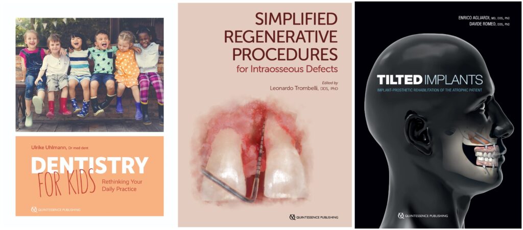 Dr Ulrike Uhlmann knows how important FUN is to the practice of pediatric dentistry, and this theme weaves its way throughout the design, narrative, and visual program of her new book, Dentistry for Kids: Rethinking Your Daily Practice. And Italian authors Drs Leonardo Trombelli and Enrico Agliardi and Davide Romeo show their best work with impressive case examples and step-by-step procedures in their respective titles published this year.